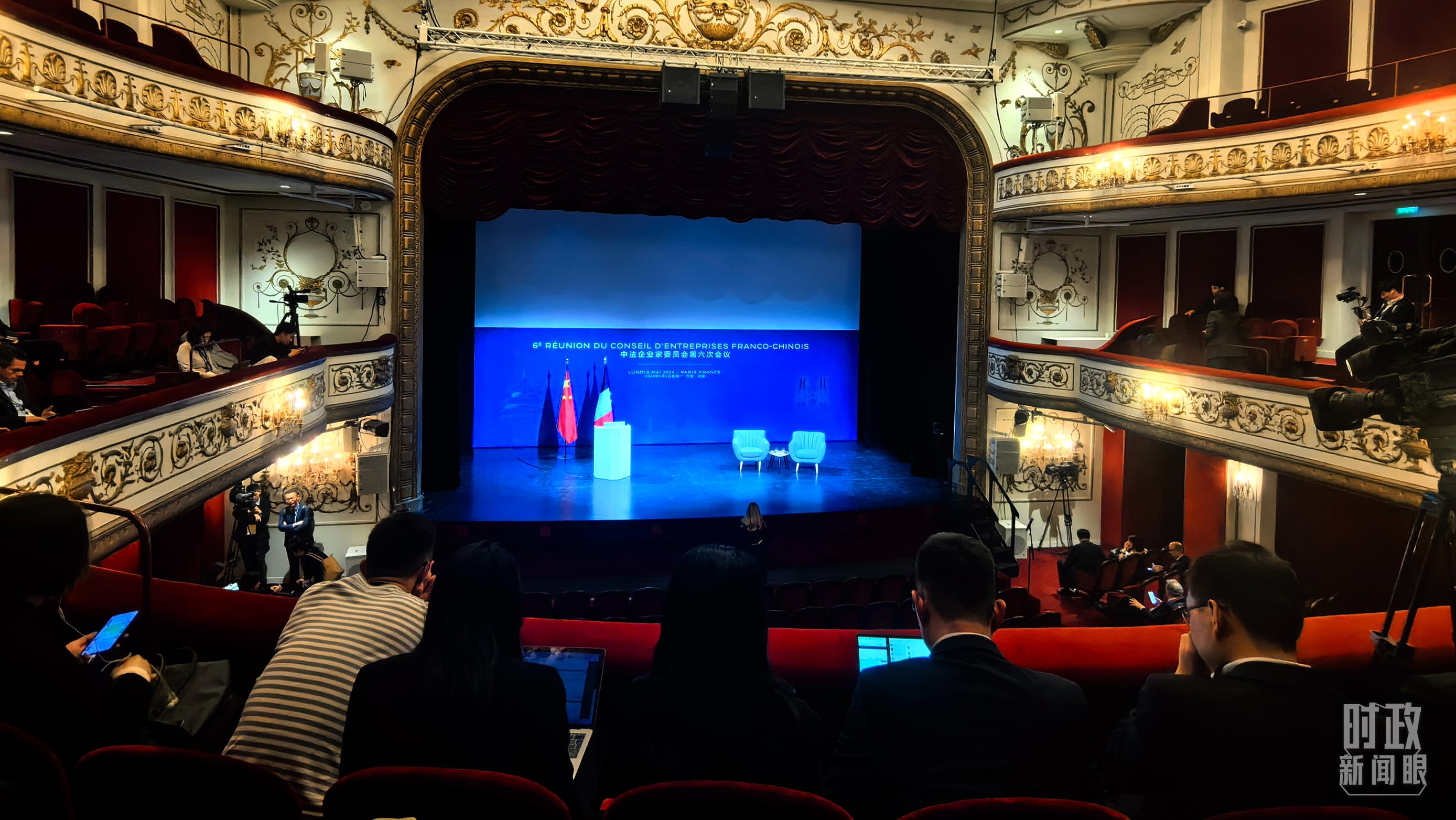中法企業(yè)家委員會(huì)第六次會(huì)議閉幕式在馬里尼劇院舉行,這是開始前的現(xiàn)場(chǎng)。(總臺(tái)央視記者史偉拍攝)