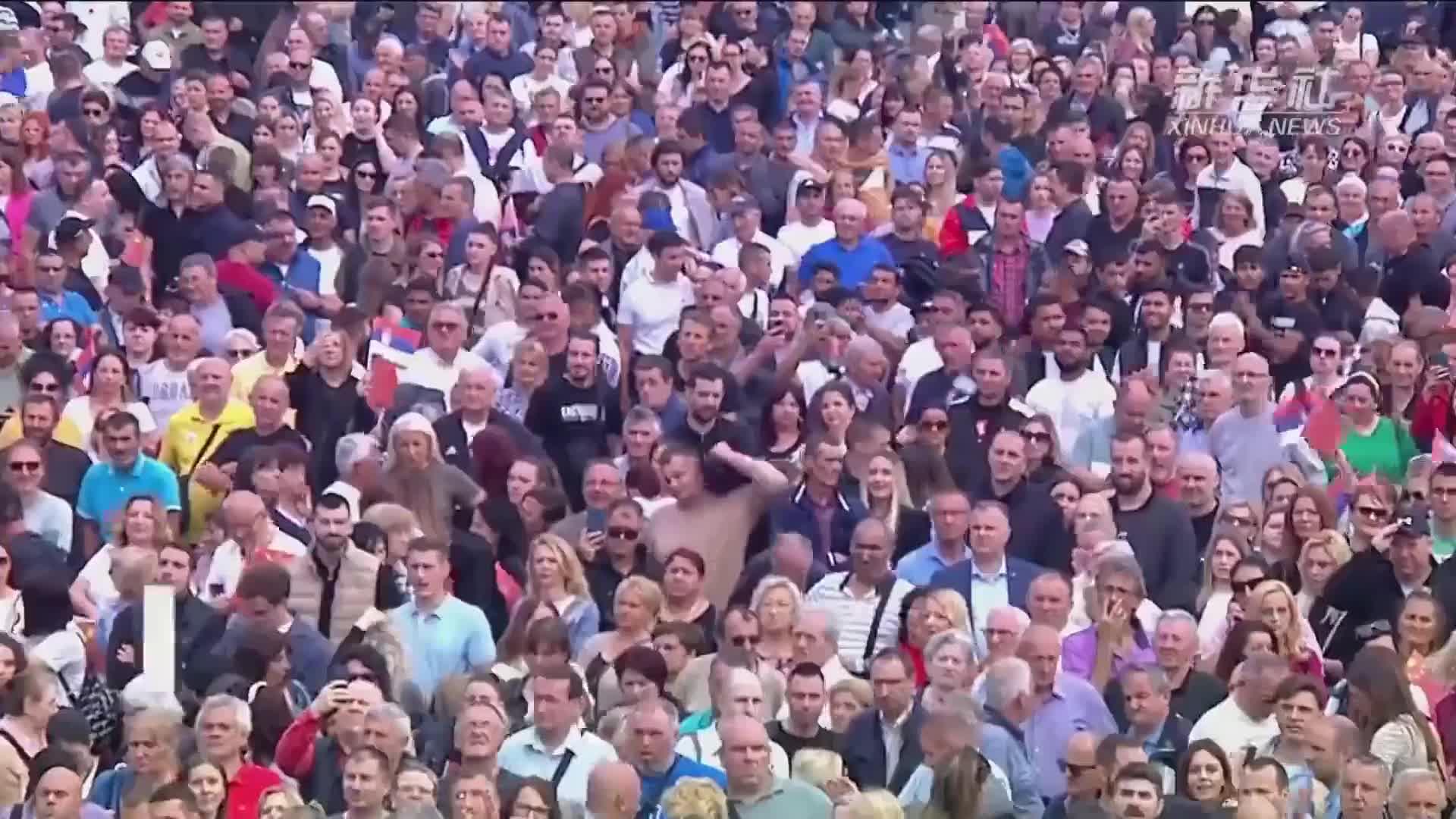 歡迎儀式結(jié)束后,他們穿過(guò)塞爾維亞大廈的大廳,走到另一側(cè)大門。大門外的廣場(chǎng),人山人海,無(wú)比壯觀。