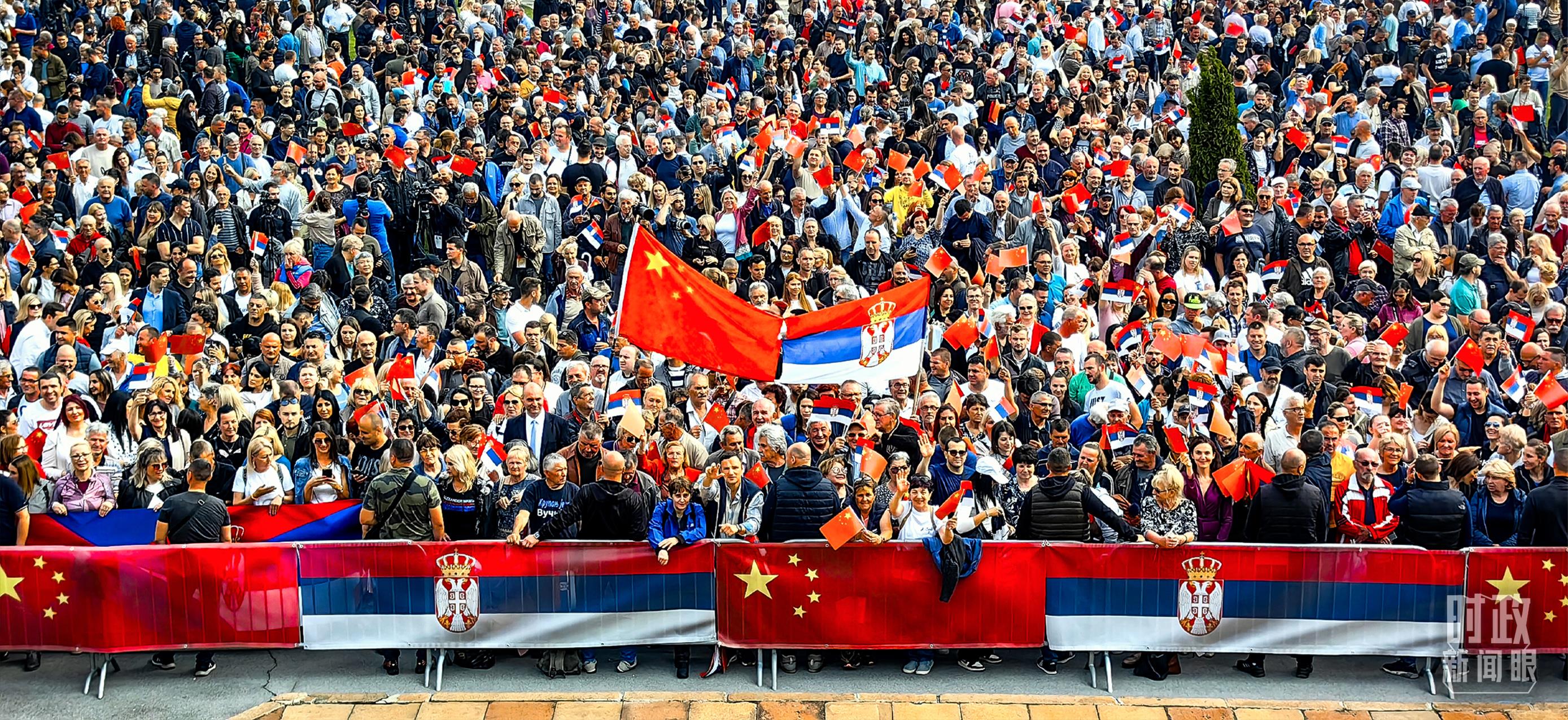 當(dāng)天的歡迎儀式結(jié)束后,武契奇總統(tǒng)陪同習(xí)主席來到政府大廈平臺(tái)。大廈廣場(chǎng)上,一萬五千名塞爾維亞民眾揮舞中塞兩國(guó)國(guó)旗,對(duì)習(xí)主席表示最熱烈的歡迎。