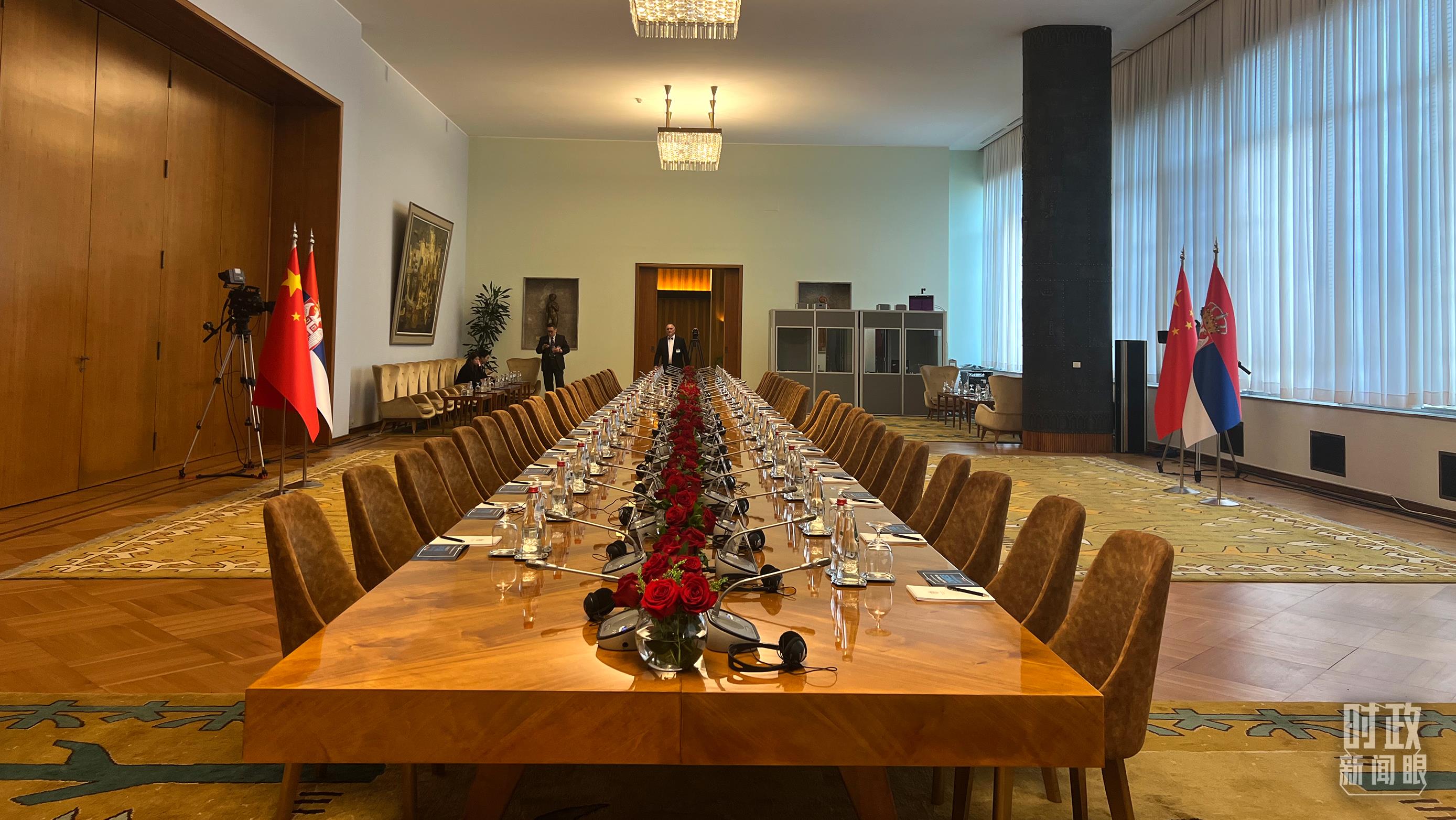 5月8日上午,習(xí)主席同武契奇總統(tǒng)舉行大范圍會(huì)談,這是會(huì)談開始前的現(xiàn)場(chǎng)。(總臺(tái)央視記者張洛嘉拍攝)