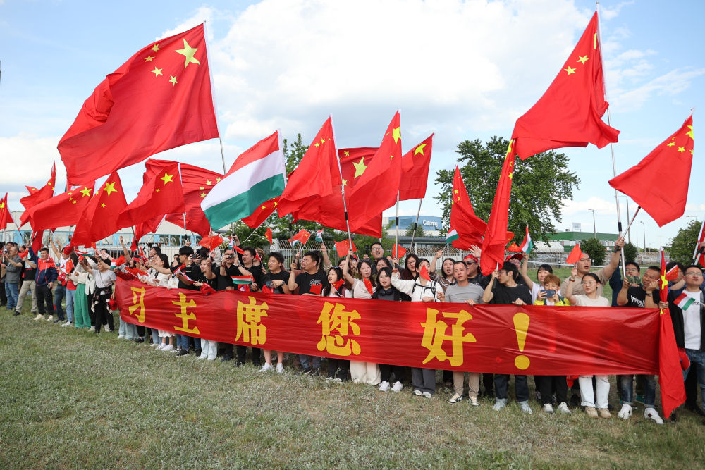 赴機場途中,旅匈華人華僑和留學生聚集在道路兩旁,揮舞中匈兩國國旗,舉著寫有“中匈友誼萬歲”等橫幅,熱烈歡送習近平主席,祝賀訪問取得圓滿成功。