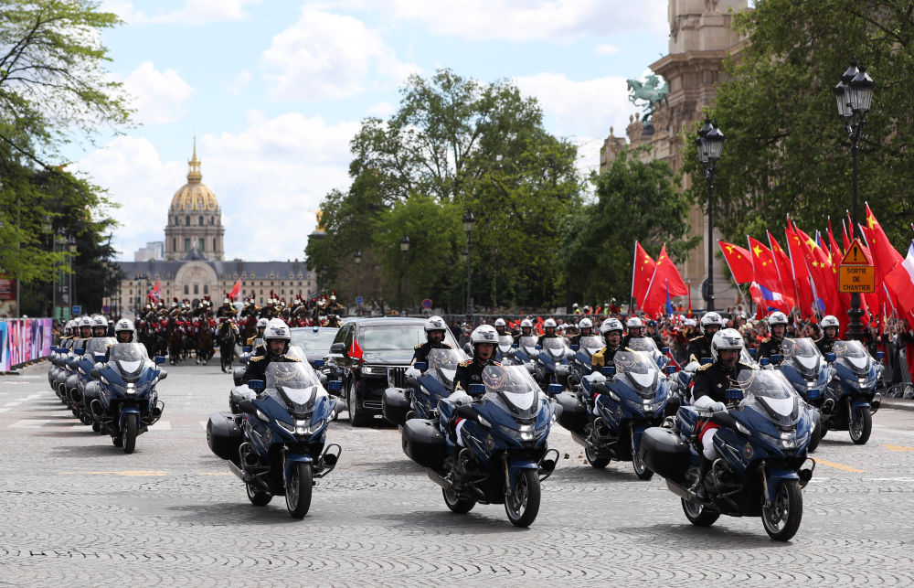 當(dāng)?shù)貢r(shí)間5月6日下午,正在法國(guó)進(jìn)行國(guó)事訪問的國(guó)家主席習(xí)近平在巴黎出席法國(guó)總統(tǒng)馬克龍舉行的隆重盛大歡迎儀式。這是歡迎儀式后,習(xí)近平和夫人彭麗媛在共和國(guó)衛(wèi)隊(duì)148名騎兵組成的禮兵馬隊(duì)和摩托車隊(duì)護(hù)衛(wèi)下,乘車前往愛麗舍宮。新華社記者 高靜 攝