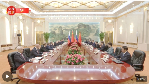 普京說:“尊敬的習近平主席,我親愛的老朋友,非常高興時隔半年再次來到友好、好客的中國并同您會面。俄中關(guān)系不是權(quán)宜之計,不針對第三方,我們在國際事務中的合作,是當今國際舞臺的主要穩(wěn)定因素之一?!?/p>
