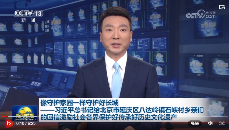 習(xí)近平總書(shū)記5月14日給北京市延慶區(qū)八達(dá)嶺鎮(zhèn)石峽村的鄉(xiāng)親們回信,強(qiáng)調(diào),長(zhǎng)城是中華民族的代表性符號(hào)和中華文明的重要象征,凝聚著中華民族自強(qiáng)不息的奮斗精神和眾志成城、堅(jiān)韌不屈的愛(ài)國(guó)情懷。勉勵(lì)鄉(xiāng)親們,帶動(dòng)更多人了解長(zhǎng)城、保護(hù)長(zhǎng)城,把祖先留下的這份珍貴財(cái)富世世代代傳下去。習(xí)近平總書(shū)記的回信在社會(huì)各界引發(fā)熱烈反響。