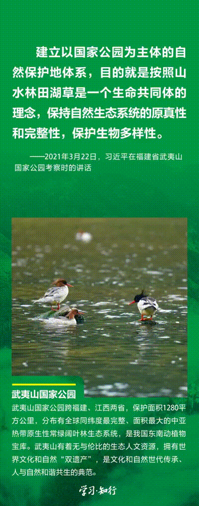 “生物多樣性使地球充滿生機(jī),也是人類生存和發(fā)展的基礎(chǔ)。”推進(jìn)以國(guó)家公園為主體的自然保護(hù)地體系建設(shè),是習(xí)近平總書(shū)記作出的重要部署。三江源、大熊貓、東北虎豹、海南熱帶雨林、武夷山等首批國(guó)家公園正式設(shè)立以來(lái),生態(tài)功能持續(xù)向好,對(duì)保護(hù)生物多樣性、推進(jìn)人與自然和諧共生的現(xiàn)代化具有重要意義。