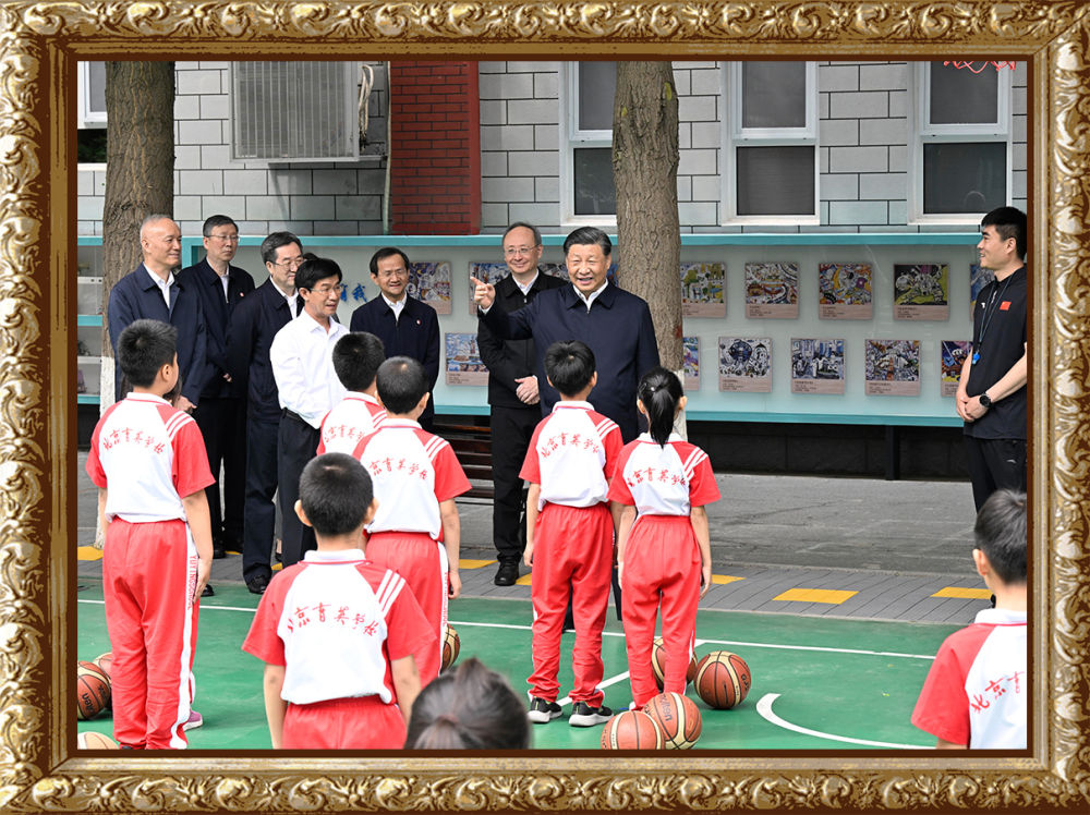 2023年5月31日上午,習(xí)近平總書記來到北京育英學(xué)校看望慰問師生,在籃球場同正在上體育課的小學(xué)生們親切交流。習(xí)近平親切地說:“現(xiàn)在生活條件好了,孩子們不是要吃得胖胖的,而是要長得壯壯的、練得棒棒的?!?/strong>