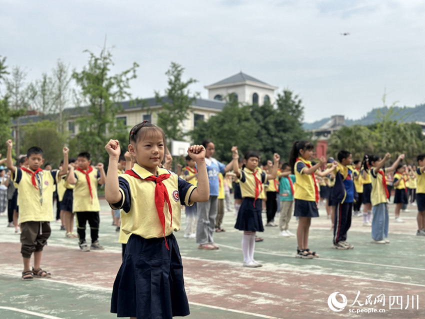 5月31日,南充市嘉陵區(qū)之江小學,學生們正在進行課間操活動。人民網(wǎng)記者 王波攝