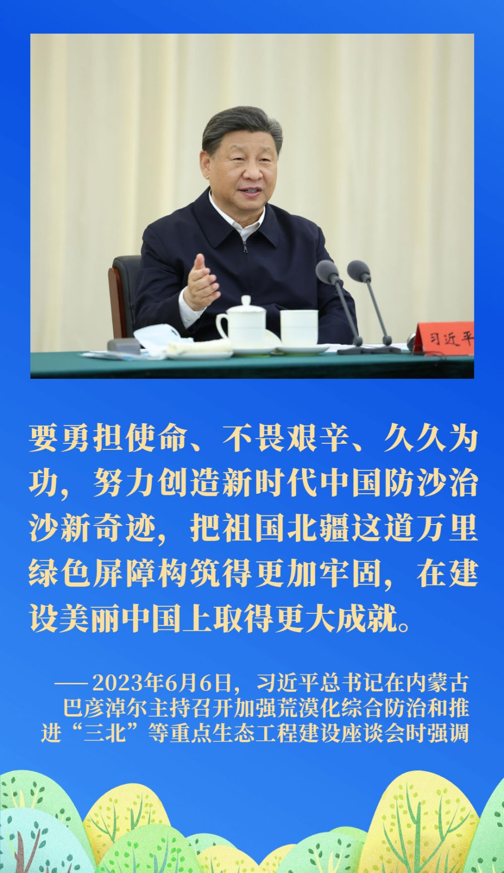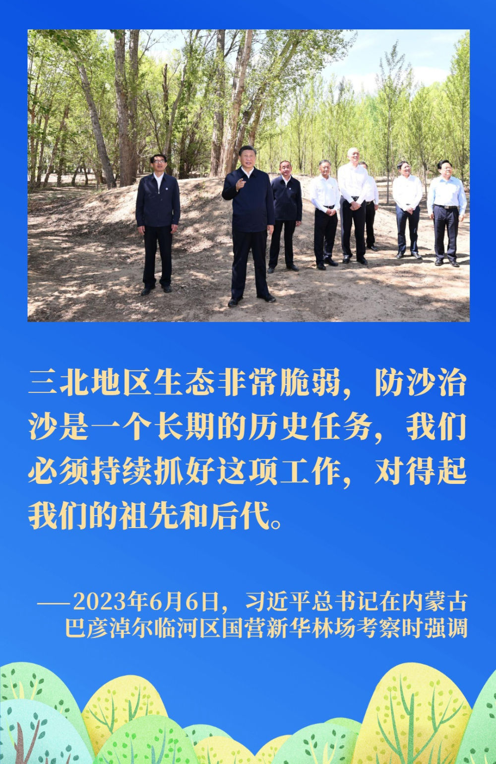 荒漠化是影響人類生存和發(fā)展的全球性重大生態(tài)問題。我國是世界上荒漠化最嚴(yán)重的國家之一。習(xí)近平總書記一直將防沙治沙牽掛在心,多次對(duì)荒漠化防治、推進(jìn)“三北”重點(diǎn)生態(tài)工程建設(shè)等工作作出重要指示。