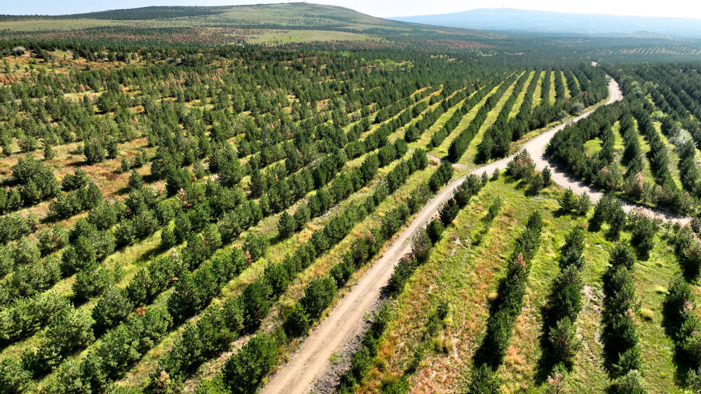 2023年9月10日在內(nèi)蒙古錫林郭勒盟多倫縣拍攝的樟子松林(無人機(jī)照片)。多倫縣地處渾善達(dá)克沙地南緣,當(dāng)?shù)赝ㄟ^人工造林、工程固沙等措施治理沙化土地。