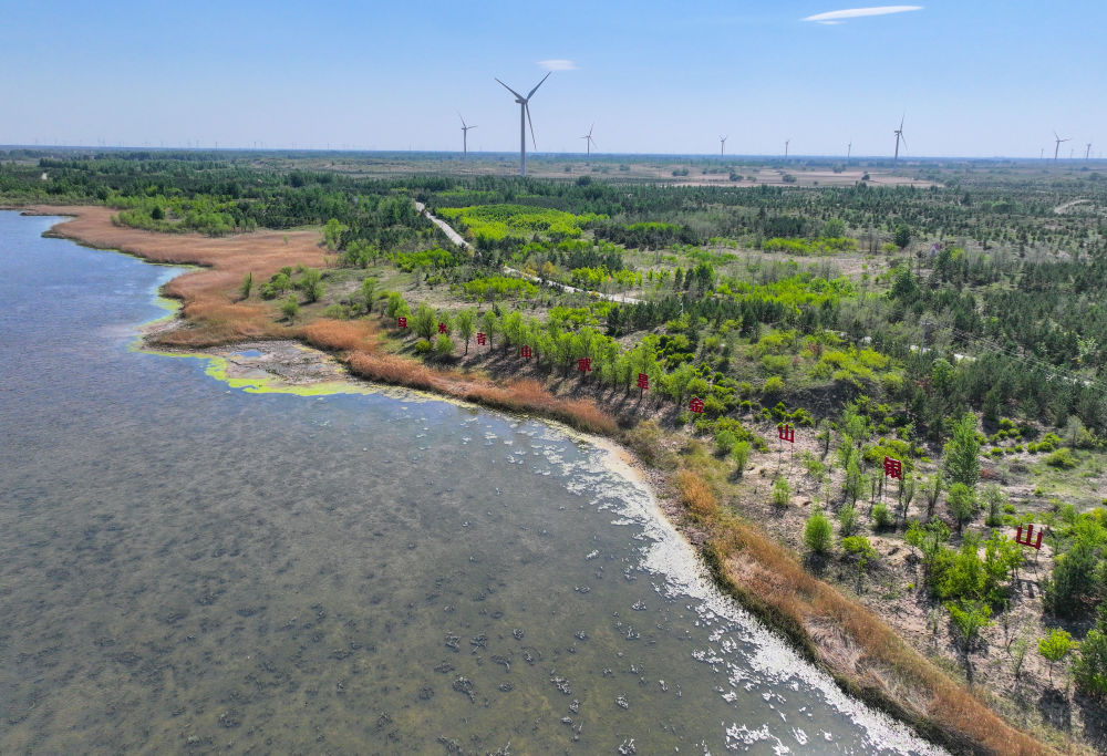 2024年5月15日在內(nèi)蒙古通遼市科爾沁沙地拍攝的“雙百萬畝”綜合治理工程努古斯臺(tái)項(xiàng)目區(qū)(無人機(jī)照片)。
