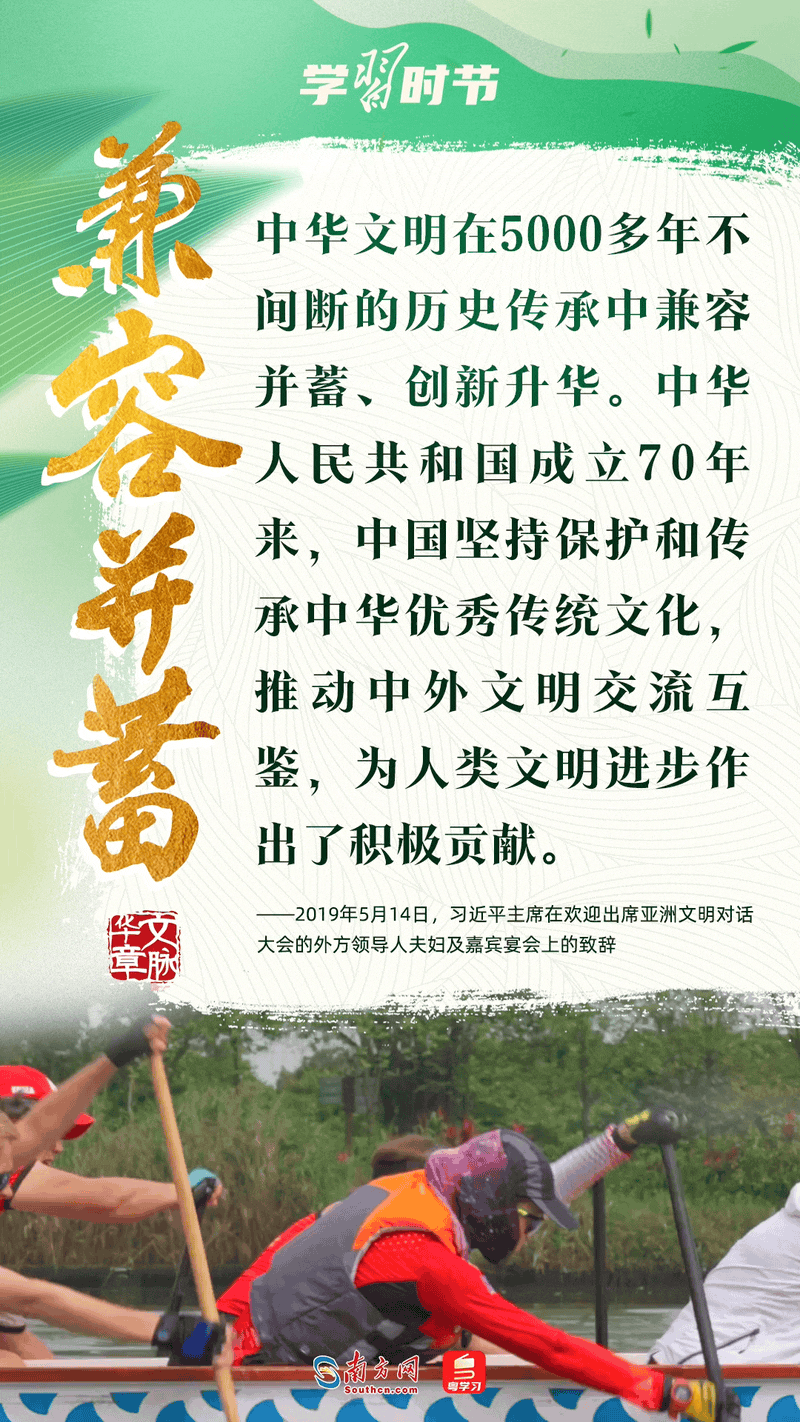 “中華優(yōu)秀傳統(tǒng)文化是中華民族的精神命脈?!绷?xí)近平總書記強(qiáng)調(diào),要努力從中華民族世世代代形成和積累的優(yōu)秀傳統(tǒng)文化中汲取營養(yǎng)和智慧,延續(xù)文化基因,萃取思想精華,展現(xiàn)精神魅力。讓我們深刻感悟總書記的殷切寄語,一同感受龍舟競渡時(shí)的歡騰場景,從中汲取中華民族血脈傳承中奔涌的精神力量。
