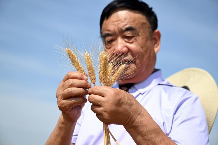 日頭正盛,71歲的種糧大戶徐淙祥深入田間,和農技專家們一起為試驗麥種測產?!八氪笞讯嗔o枬M,又是一個豐收年!”徐淙祥高興地說。