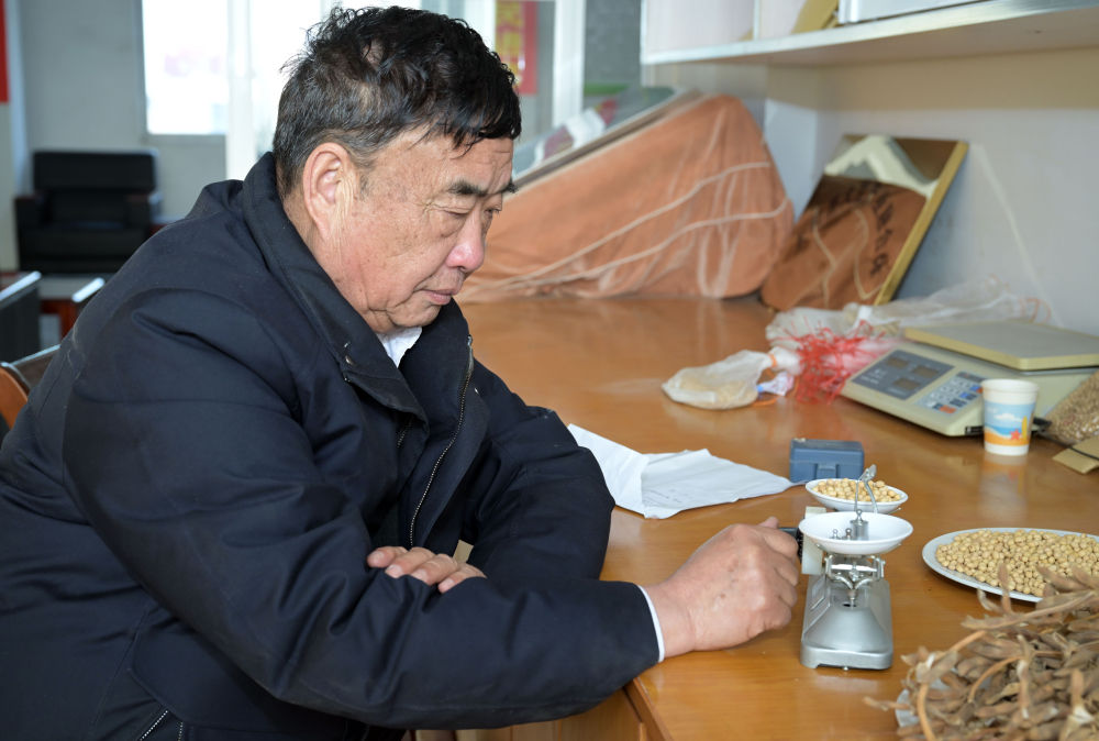 2023年2月21日,在太和縣淙祥現代農業(yè)種植專業(yè)合作社,徐淙祥在實驗室里對農作物樣品進行稱重和記錄。