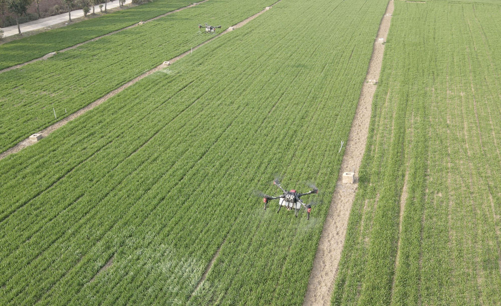 2023年2月21日,在太和縣淙祥現代農業(yè)種植專業(yè)合作社,無人機噴灑農藥(無人機照片)。