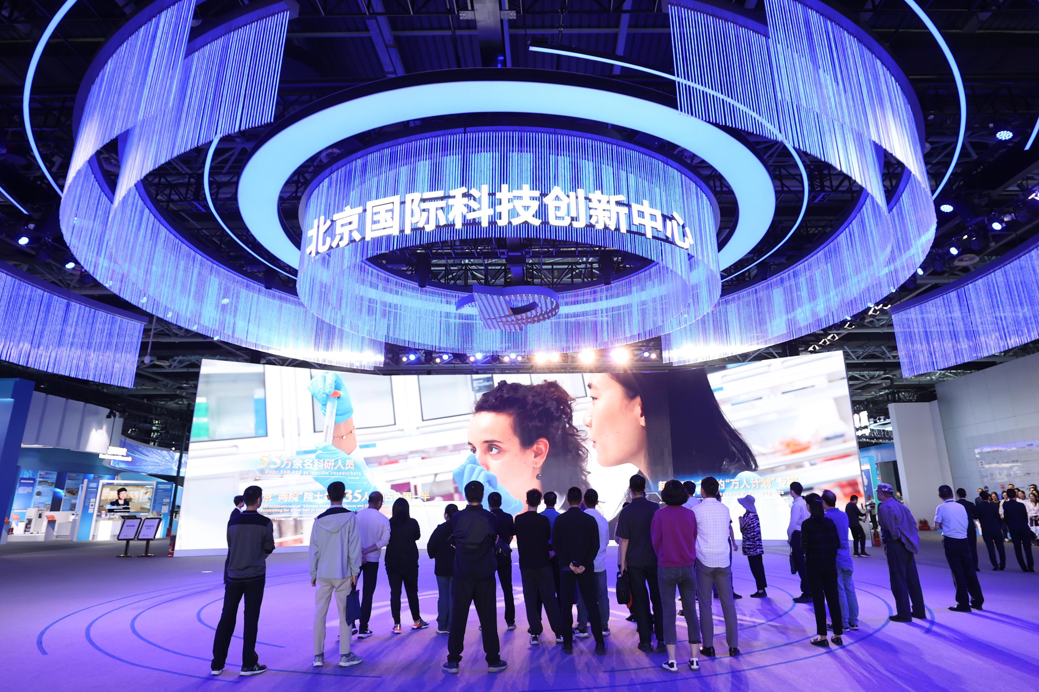 2024年5月11日,觀眾在中關(guān)村展示中心觀看科技創(chuàng)新宣傳片。