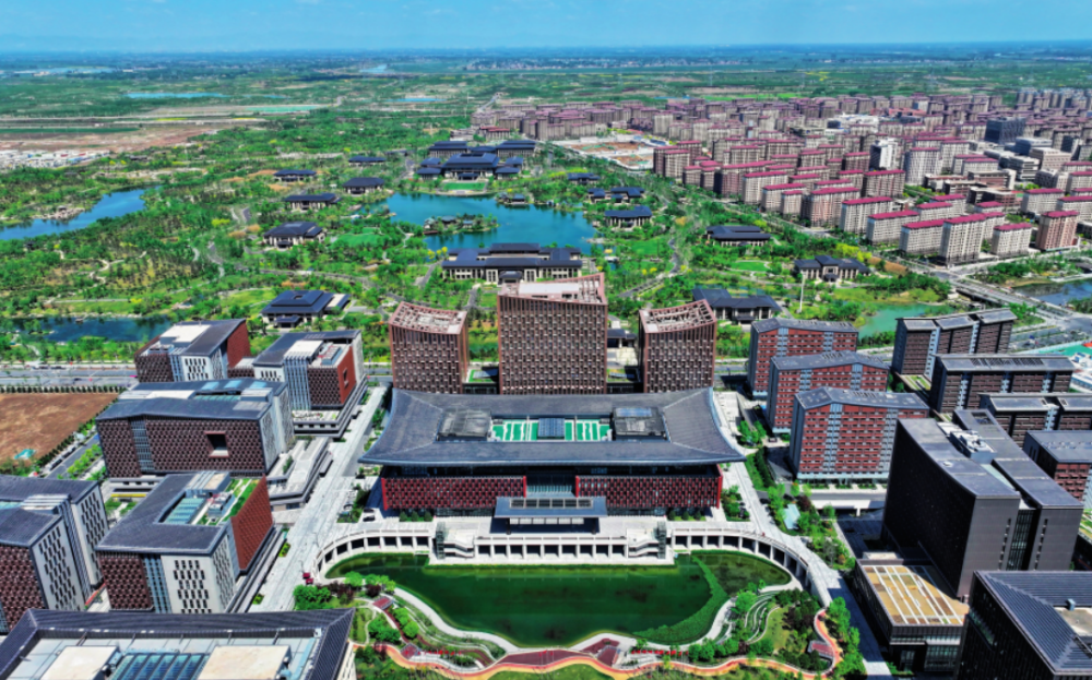 截至2023年底,雄安新建建筑中高星級綠色建筑占比達(dá)100%。其中,新建城鎮(zhèn)建筑執(zhí)行二星級以上綠色建筑標(biāo)準(zhǔn),新建政府投資及大型公共建筑執(zhí)行綠色建筑三星級標(biāo)準(zhǔn)。容東、容西、雄東等新建片區(qū)高品質(zhì)綠色建筑集中成片,綠色生態(tài)宜居新城區(qū)雛形初現(xiàn)。