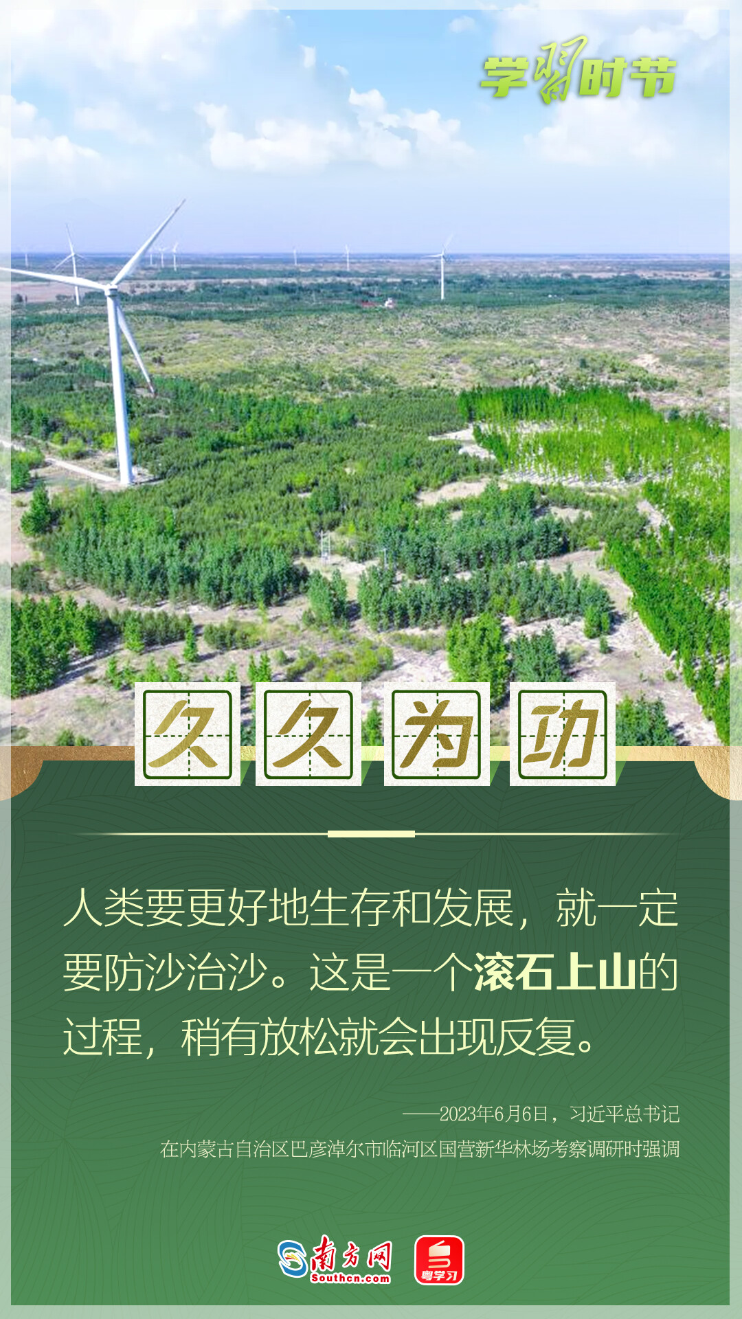 今年6月17日是第30個(gè)世界防治荒漠化與干旱日,今年的國際主題是“為了土地聯(lián)合起來:我們的遺產(chǎn)、我們的未來”,我國的主題為“打好‘三北’工程攻堅(jiān)戰(zhàn) 筑牢北方生態(tài)安全屏障”。