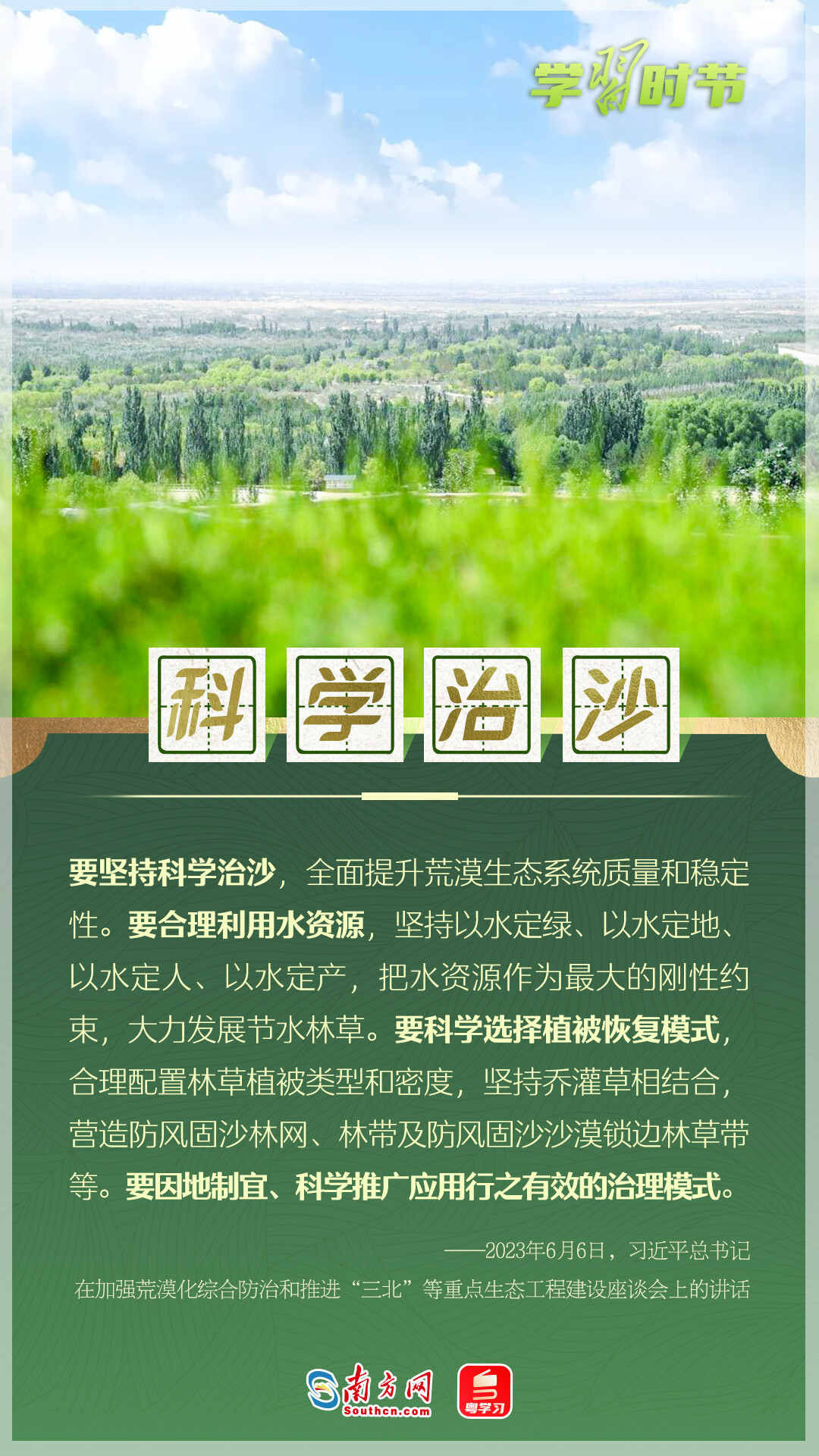 習(xí)近平總書記高度重視荒漠化防治工作,深入多地調(diào)研,多次作出重要指示。在習(xí)近平生態(tài)文明思想指引下,中國防治荒漠化成效顯著。讓我們一起從總書記的重要論述里學(xué)習(xí)領(lǐng)悟,堅(jiān)定走好荒漠化防治之路。