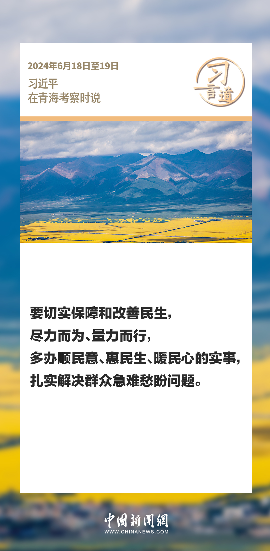 6月18日至19日,中共中央總書記、國家主席、中央軍委主席習近平在青??疾煺{研。在考察中,習近平指出——