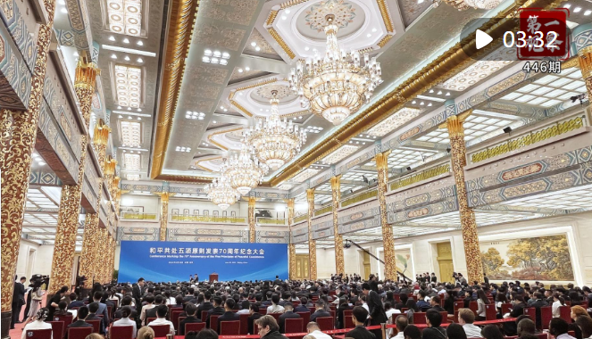 6月28日上午,和平共處五項原則發(fā)表70周年紀念大會在北京人民大會堂金色大廳隆重舉行。國家主席習近平出席紀念大會,并發(fā)表題為《弘揚和平共處五項原則,攜手構(gòu)建人類命運共同體》的重要講話。
