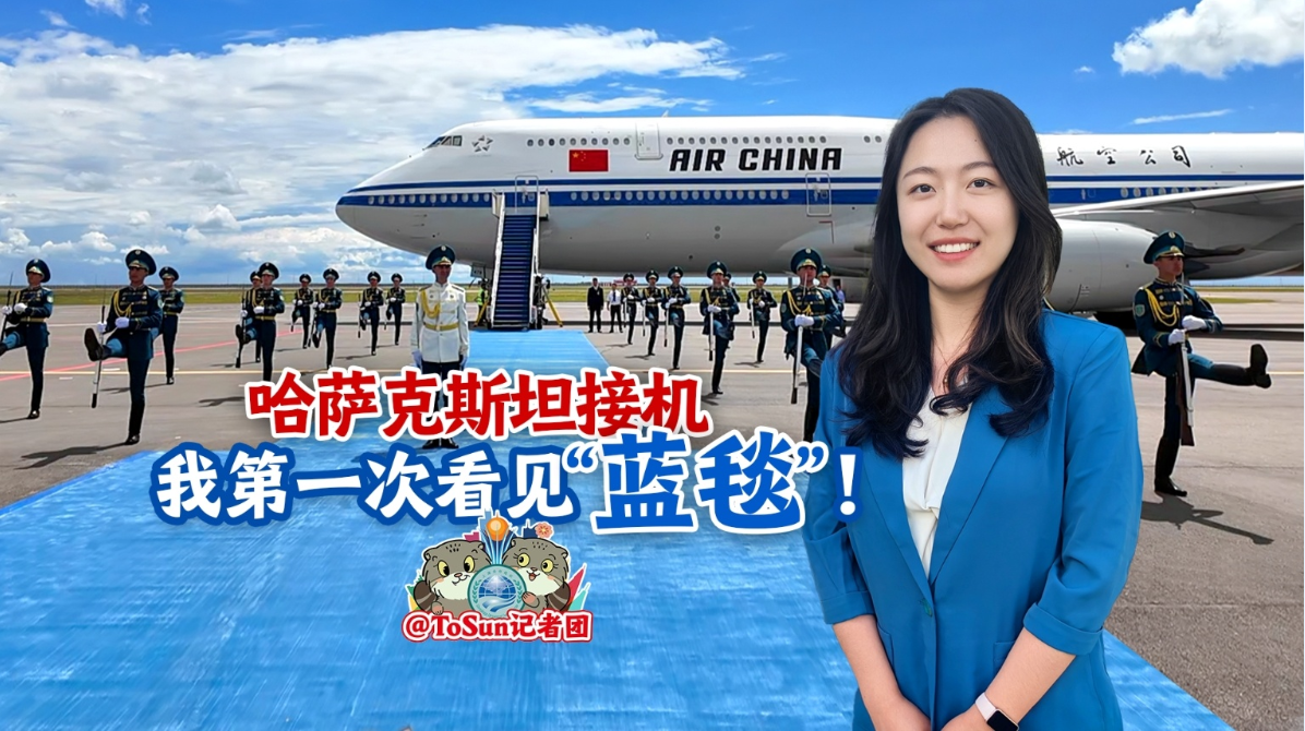 ToSun記者團(tuán)在現(xiàn)場第一次見到了用天藍(lán)色地毯鋪就的“紅毯”。藍(lán)毯寓意是什么?一起來看現(xiàn)場。