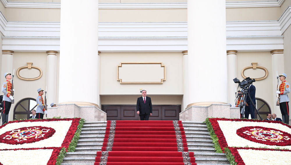 當?shù)貢r間5日,國家主席習近平在杜尚別出席塔吉克斯坦總統(tǒng)拉赫蒙舉行的歡迎儀式。
