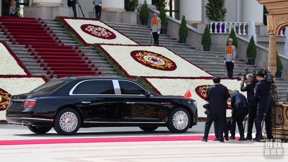 習(xí)主席乘坐的紅旗車抵達塔總統(tǒng)府。(總臺記者李晉拍攝)