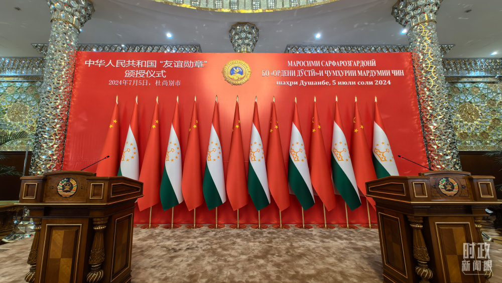 此訪期間,中塔友誼見證又一個“高光時刻”:習(xí)近平主席在杜尚別總統(tǒng)府舉行隆重授勛儀式,向拉赫蒙總統(tǒng)頒授中華人民共和國“友誼勛章”。