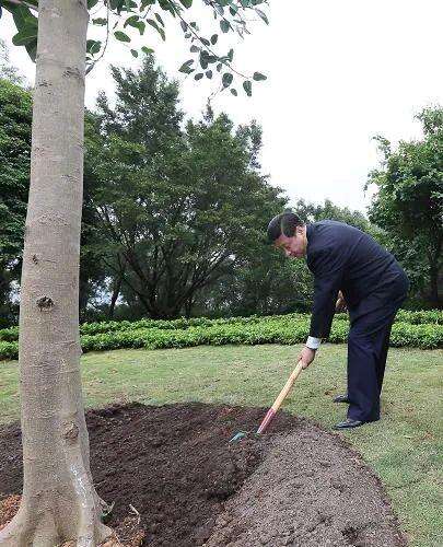 8年前種下的那棵高山榕已是亭亭如蓋、枝繁葉茂,展現(xiàn)出蓬勃的生命活力??倳?shū)記走到樹(shù)下,深有感慨地說(shuō):“8年了,彈指一揮間啊。選的這個(gè)地方很好,樹(shù)冠能展開(kāi),樹(shù)長(zhǎng)得也快。”