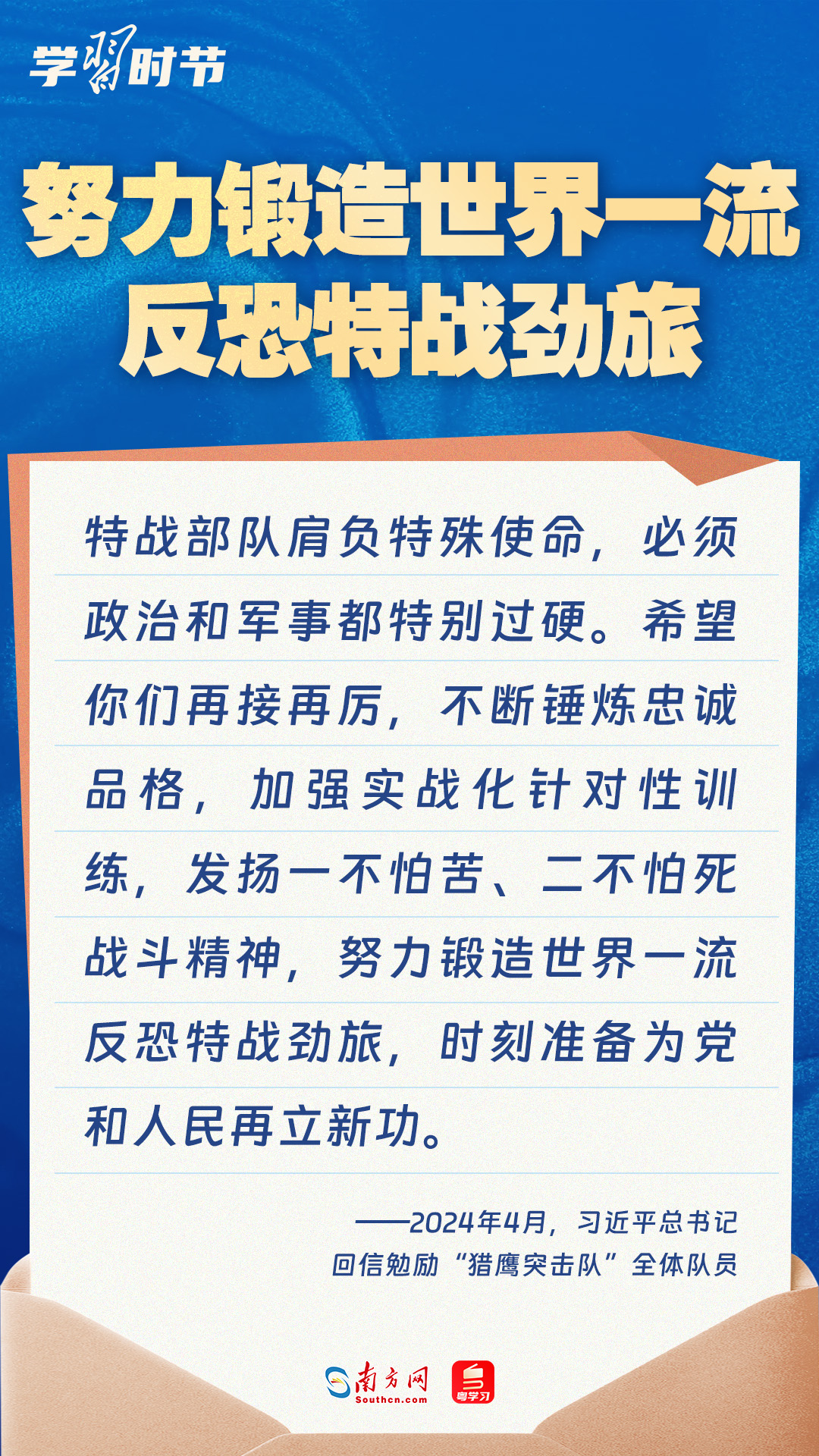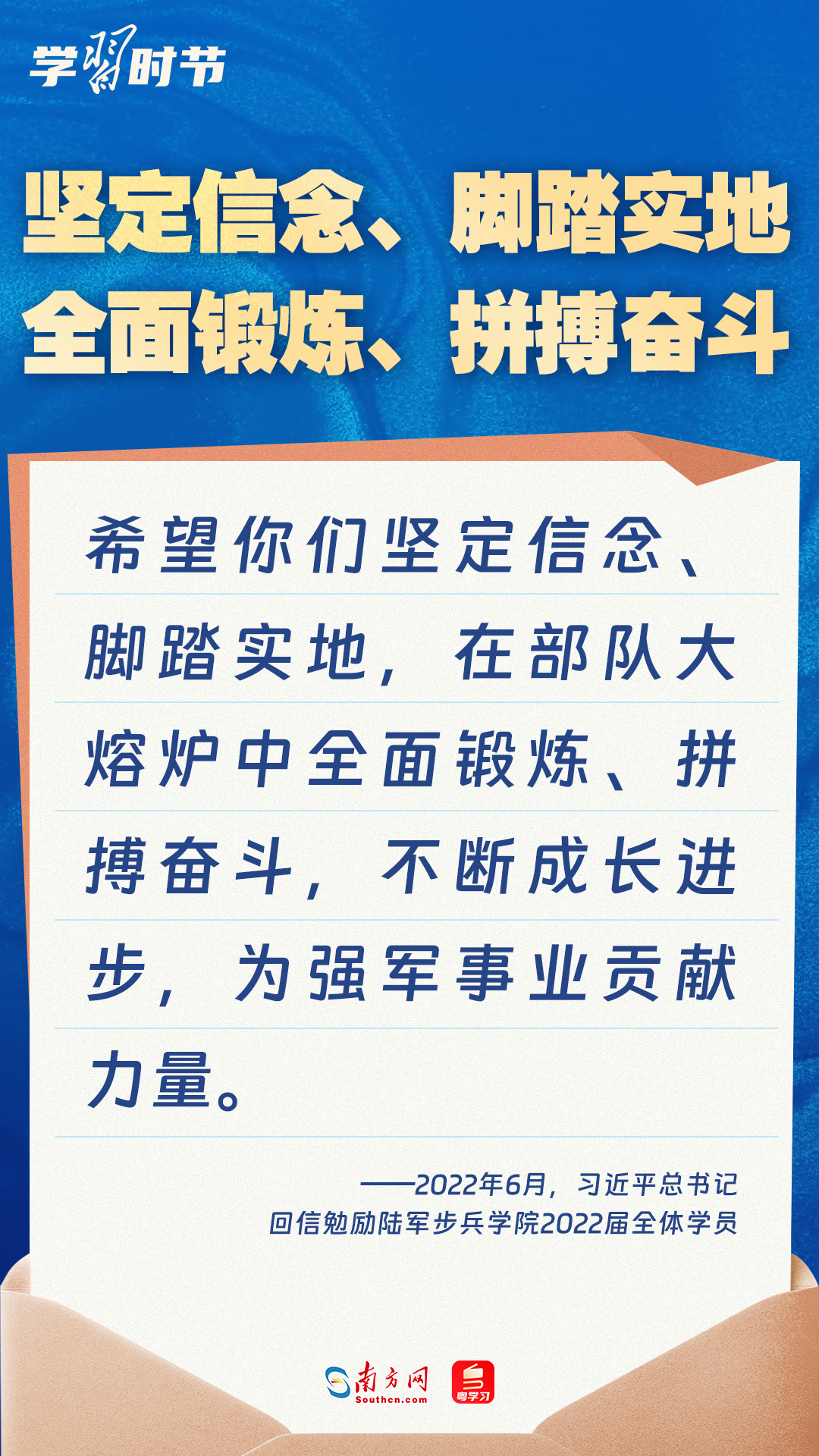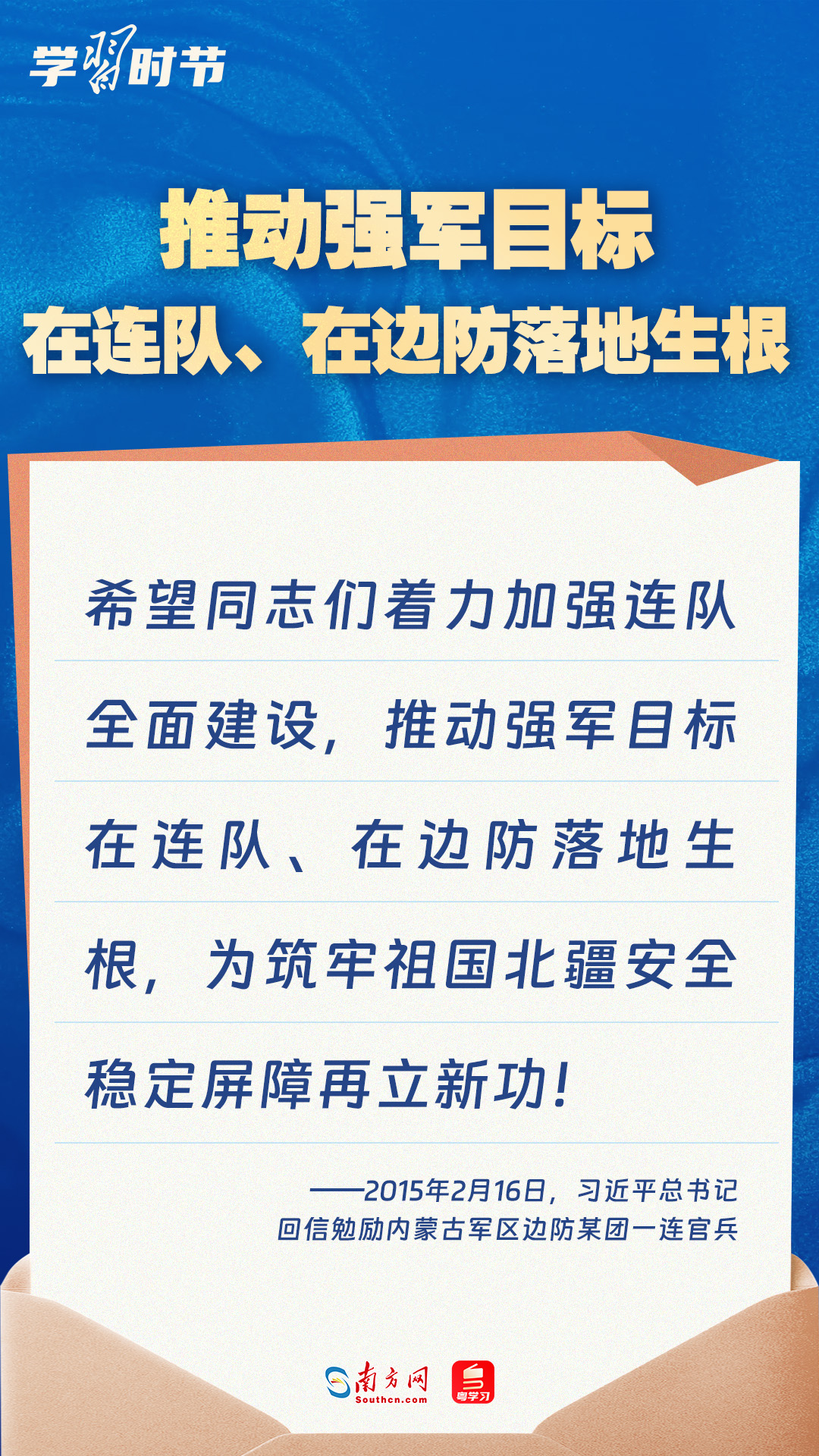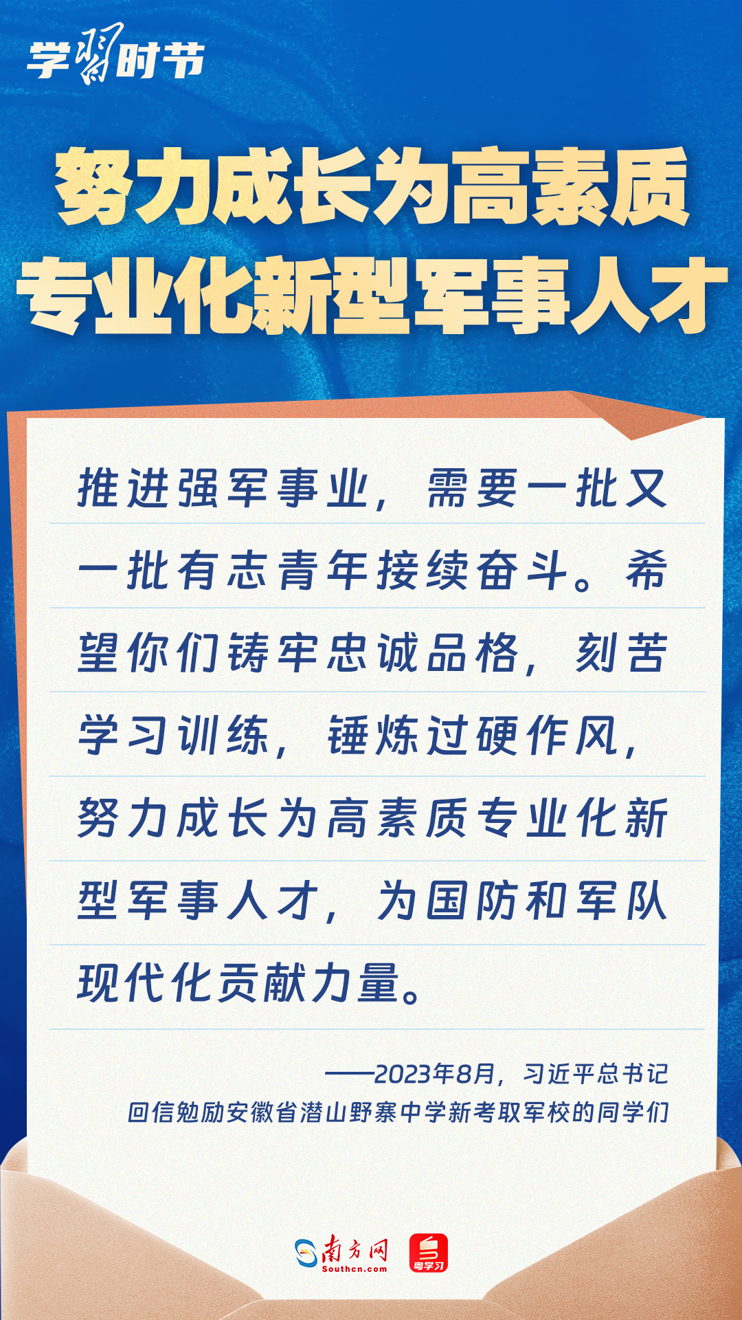 強(qiáng)國(guó)必須強(qiáng)軍,軍強(qiáng)才能國(guó)安。黨的十八大以來(lái),習(xí)近平總書(shū)記始終牽掛一線官兵冷暖,高度重視我軍院校教育和人才培養(yǎng)工作,多次給部隊(duì)官兵、軍校學(xué)員等回信。讓我們一起重溫總書(shū)記的諄諄寄語(yǔ)!