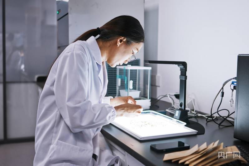 科研人員在實驗室進行考種工作(央廣網(wǎng)記者 張羲輪 攝)