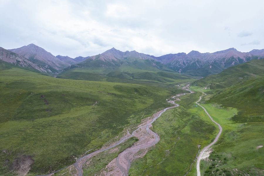 2024年7月10日在甘肅省張掖市肅南裕固族自治縣皇城鎮(zhèn)拍攝的祁連山景色(無人機照片)。新華社記者 郎兵兵 攝