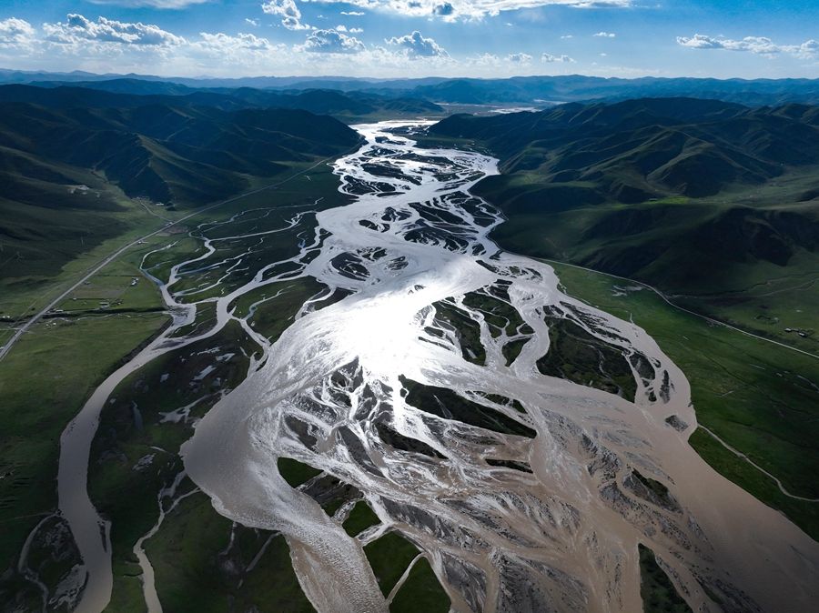 在青海省果洛藏族自治州達(dá)日縣境內(nèi)拍攝的黃河(2024年7月31日攝,無人機照片)。新華社記者 張龍 攝