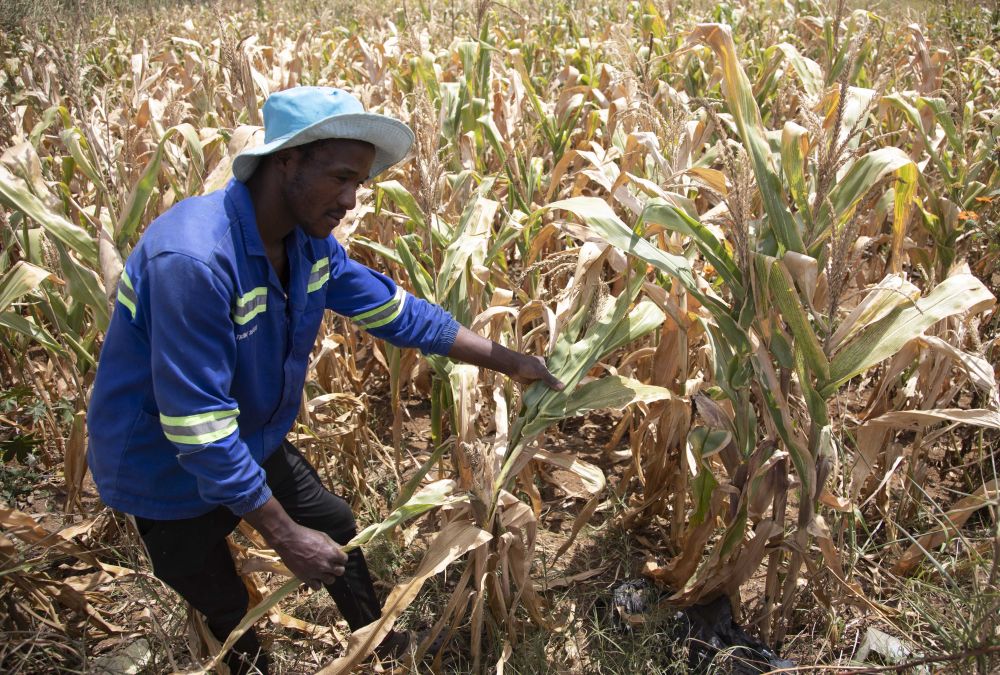 4月3日,農(nóng)民在津巴布韋首都哈拉雷近郊的一塊玉米地檢查作物長(zhǎng)勢(shì)。新華社發(fā)