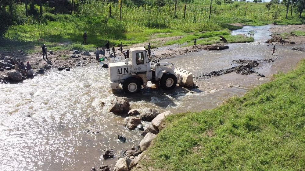 2023年6月7日,在剛果(金)南基伍省卡萊亥地區(qū),中國第26批赴剛果(金)維和工兵分隊官兵進(jìn)行施工作業(yè)。