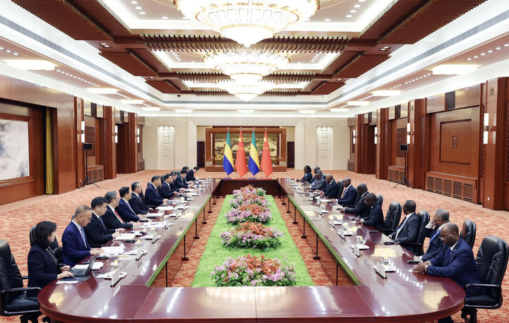 9月4日下午,國家主席習近平在北京人民大會堂會見來華出席中非合作論壇北京峰會的加蓬總統(tǒng)恩圭馬。新華社記者 姚大偉 攝