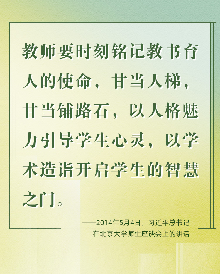 他們帶領(lǐng)學(xué)生前行,更新舊知、開掘新知、探索未知;他們肩負(fù)光榮使命,為黨育人、為國育才、為民育未來。守教育報(bào)國初心、擔(dān)立德樹人使命、圓民族復(fù)興之夢,建設(shè)社會主義現(xiàn)代化強(qiáng)國之路上,教育家精神自當(dāng)念茲在茲、代代傳承、光芒永綻。