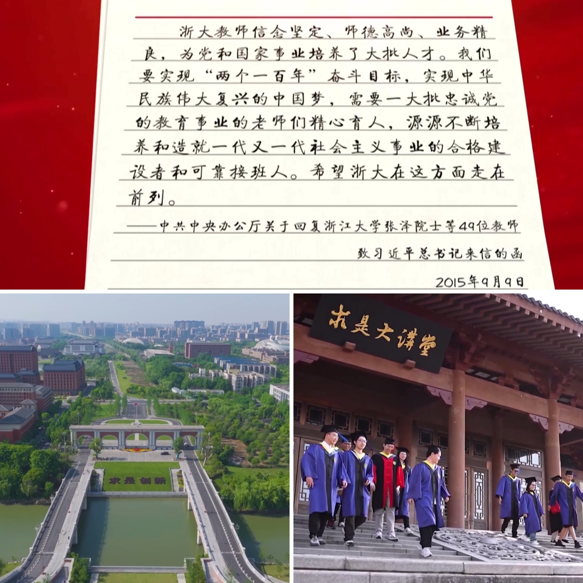 2015年9月9日,教師節(jié)前一天,浙江大學的49位老師收到了一份特殊的教師節(jié)禮物,習近平總書記特別囑咐中共中央辦公廳,發(fā)來了關于回復49位老師來信的函。