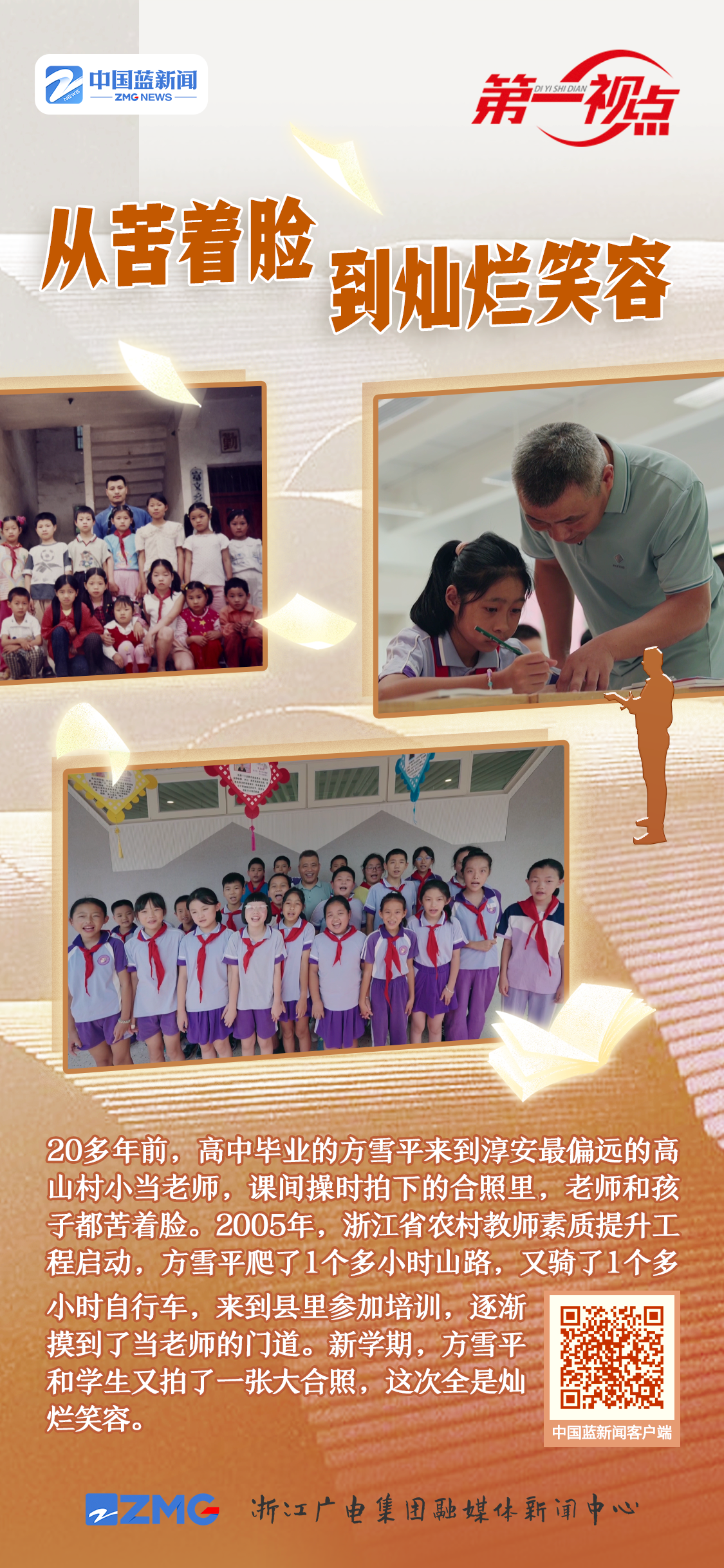 彼時的浙江,小學教師的學歷達標率,在全國排位倒數。高中畢業(yè)的農村老師方雪平,來到淳安最偏遠的高山村小。一個人,要教兩個年級20多個孩子的全部科目。一次課間操時,村小老師拍下的照片,無論是老師還是孩子,一個個都苦著臉。方雪平說:“當時(上課時)我心里是很緊張的,緊張到手心冒汗。外出培訓的機會幾乎是沒有的,自己慢慢去摸索唄。”