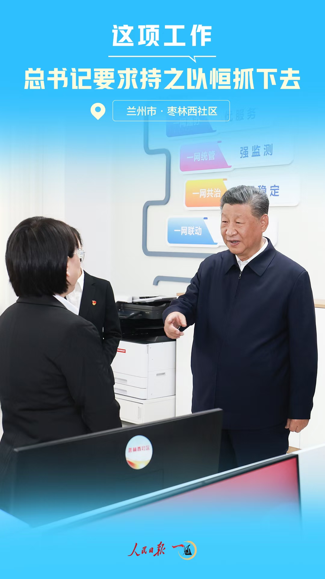 9月11日下午,習近平總書記來到甘肅省蘭州市考察。在安寧區(qū)棗林西社區(qū)黨群服務中心考察時,總書記細致詢問了落實為基層減負等情況。
