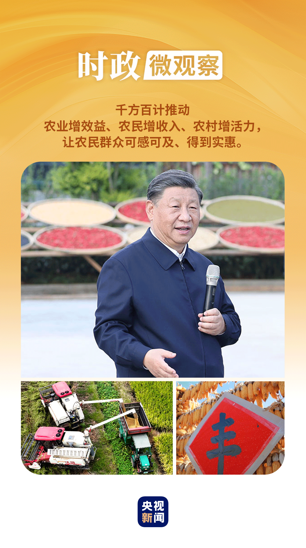 在第七個“中國農(nóng)民豐收節(jié)”到來之際,習(xí)近平總書記代表黨中央,向全國廣大農(nóng)民和工作在“三農(nóng)”戰(zhàn)線上的同志們致以節(jié)日祝賀和誠摯問候,對于堅持不懈夯實農(nóng)業(yè)基礎(chǔ),推進(jìn)鄉(xiāng)村全面振興提出殷切期望和要求——