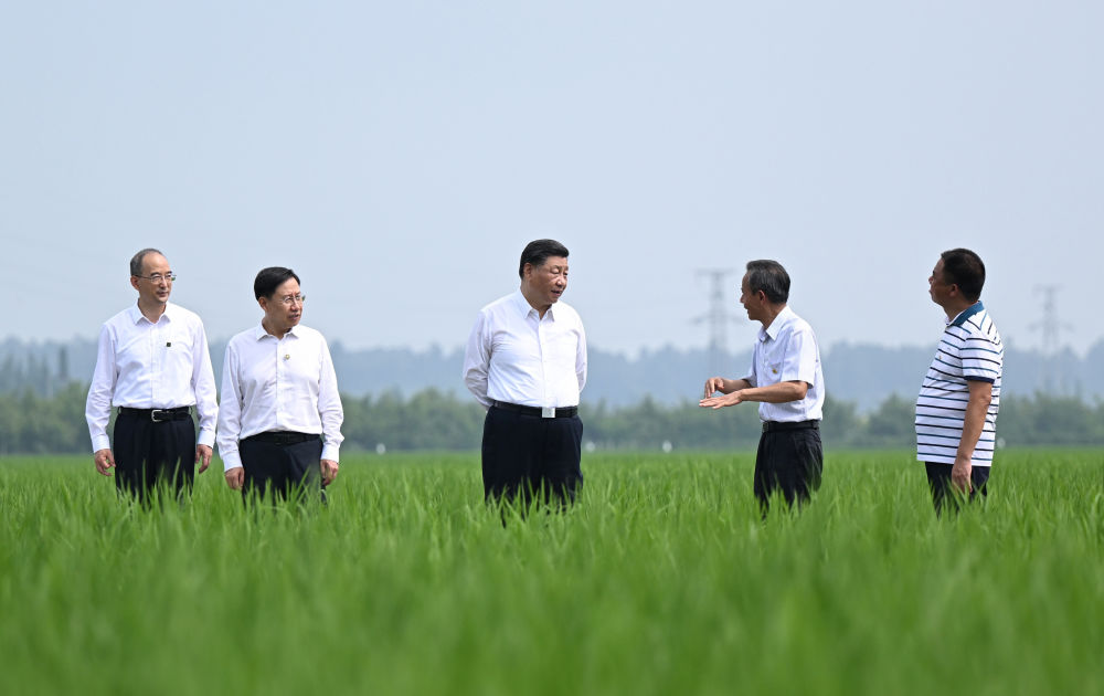 2022年6月8日上午,習(xí)近平在四川眉山市東坡區(qū)太和鎮(zhèn)永豐村高標(biāo)準(zhǔn)水稻種植基地考察,了解水稻試驗育種和種植推廣情況。習(xí)近平強調(diào):推進農(nóng)業(yè)現(xiàn)代化,既要靠農(nóng)業(yè)專家,也要靠廣大農(nóng)民。要加強現(xiàn)代農(nóng)業(yè)科技推廣應(yīng)用和技術(shù)培訓(xùn),把種糧大戶組織起來,積極發(fā)展綠色農(nóng)業(yè)、生態(tài)農(nóng)業(yè)、高效農(nóng)業(yè)。我們有信心、有底氣把中國人的飯碗牢牢端在自己手中。