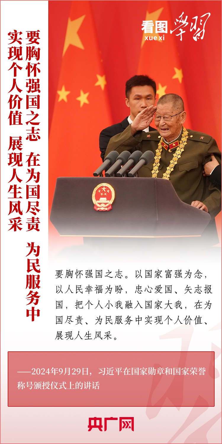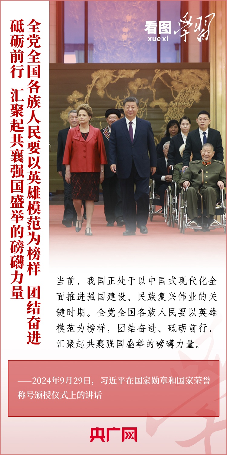 9月29日,中華人民共和國國家勛章和國家榮譽(yù)稱號頒授儀式在北京舉行,習(xí)近平總書記向國家勛章和國家榮譽(yù)稱號獲得者頒授勛章獎?wù)虏l(fā)表重要講話??倳洀?qiáng)調(diào),全黨全國各族人民要以英雄模范為榜樣,團(tuán)結(jié)奮進(jìn)、砥礪前行,匯聚起共襄強(qiáng)國盛舉的磅礴力量。一起來學(xué)習(xí)!