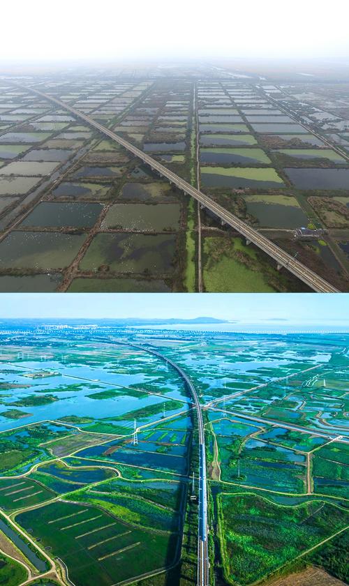 拼版圖片:圖為2011年和2023年鄱陽湖區(qū)的變化,曾經湖區(qū)內分布有捕鳥網,如今人與自然和諧共生的理念深入人心。攝影:傅建斌 周海燕 制作:賈稀荃