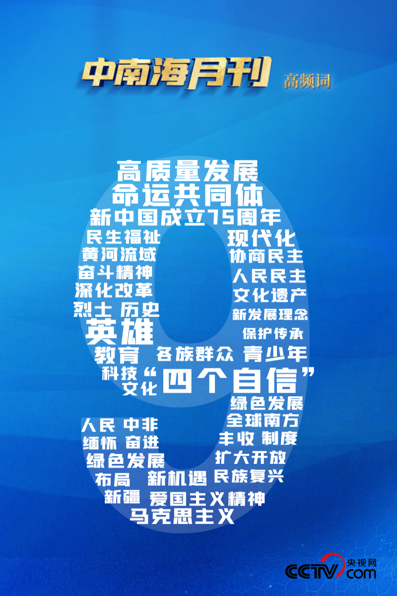 發(fā)展是解決中國所有問題的關鍵,也是中國共產(chǎn)黨執(zhí)政興國的第一要務。央視網(wǎng)I學習數(shù)據(jù)庫梳理分析習近平總書記9月重要講話,“人民”“教育”“高質(zhì)量發(fā)展”“黃河流域”等高頻詞貫穿在總書記治國理政思想的脈絡中。