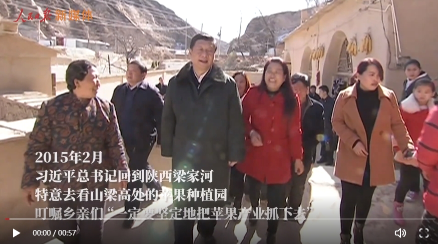 2015年2月,總書(shū)記回到陜西梁家河,特意去看山梁高處的蘋(píng)果種植園,叮囑鄉(xiāng)親們,“一定要堅(jiān)定地把蘋(píng)果產(chǎn)業(yè)抓下去。”此時(shí),聲勢(shì)浩大的脫貧攻堅(jiān)正如火如荼。