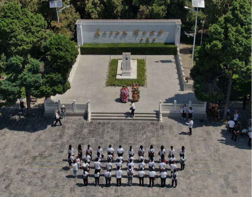 2021年6月24日,參觀者在位于河南省蘭考縣的焦裕祿紀(jì)念園瞻仰焦裕祿烈士墓(無人機照片)。新華社記者 李安 攝