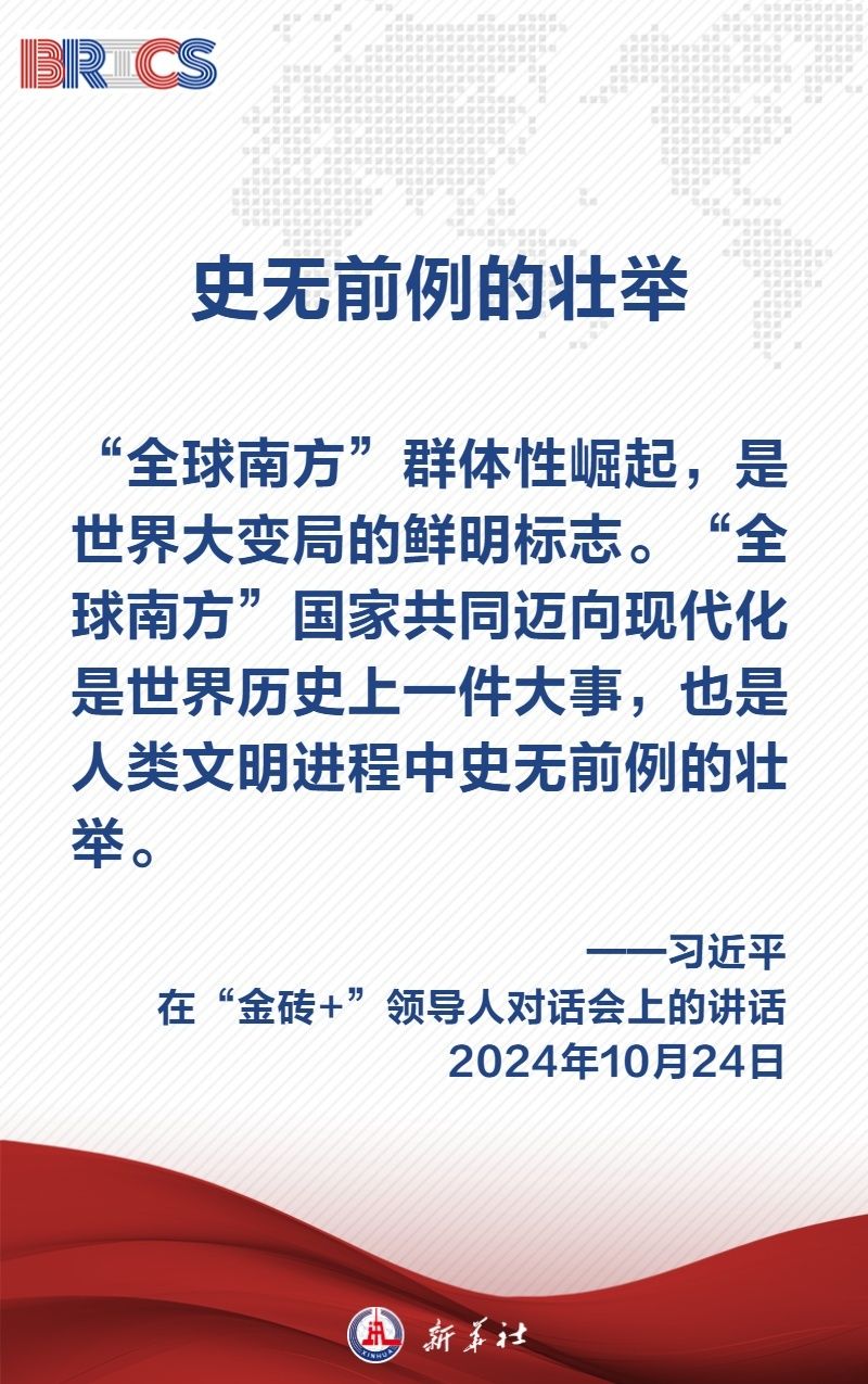 當?shù)貢r間10月24日上午,國家主席習近平在喀山會展中心出席“金磚+”領導人對話會并發(fā)表題為《匯聚“全球南方”磅礴力量 共同推動構建人類命運共同體》的重要講話,闡明中國主張——