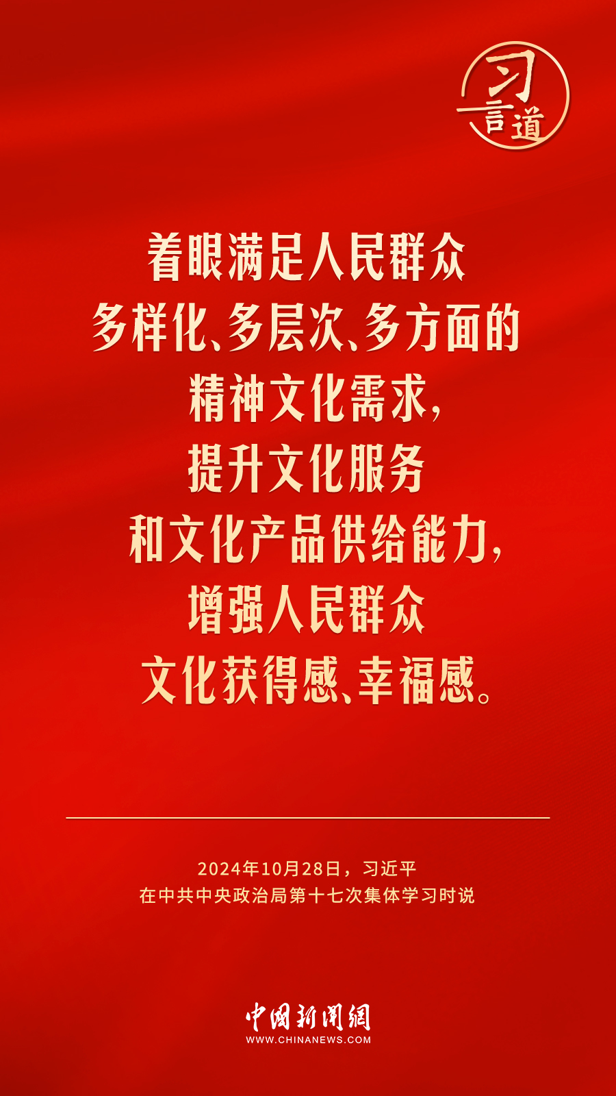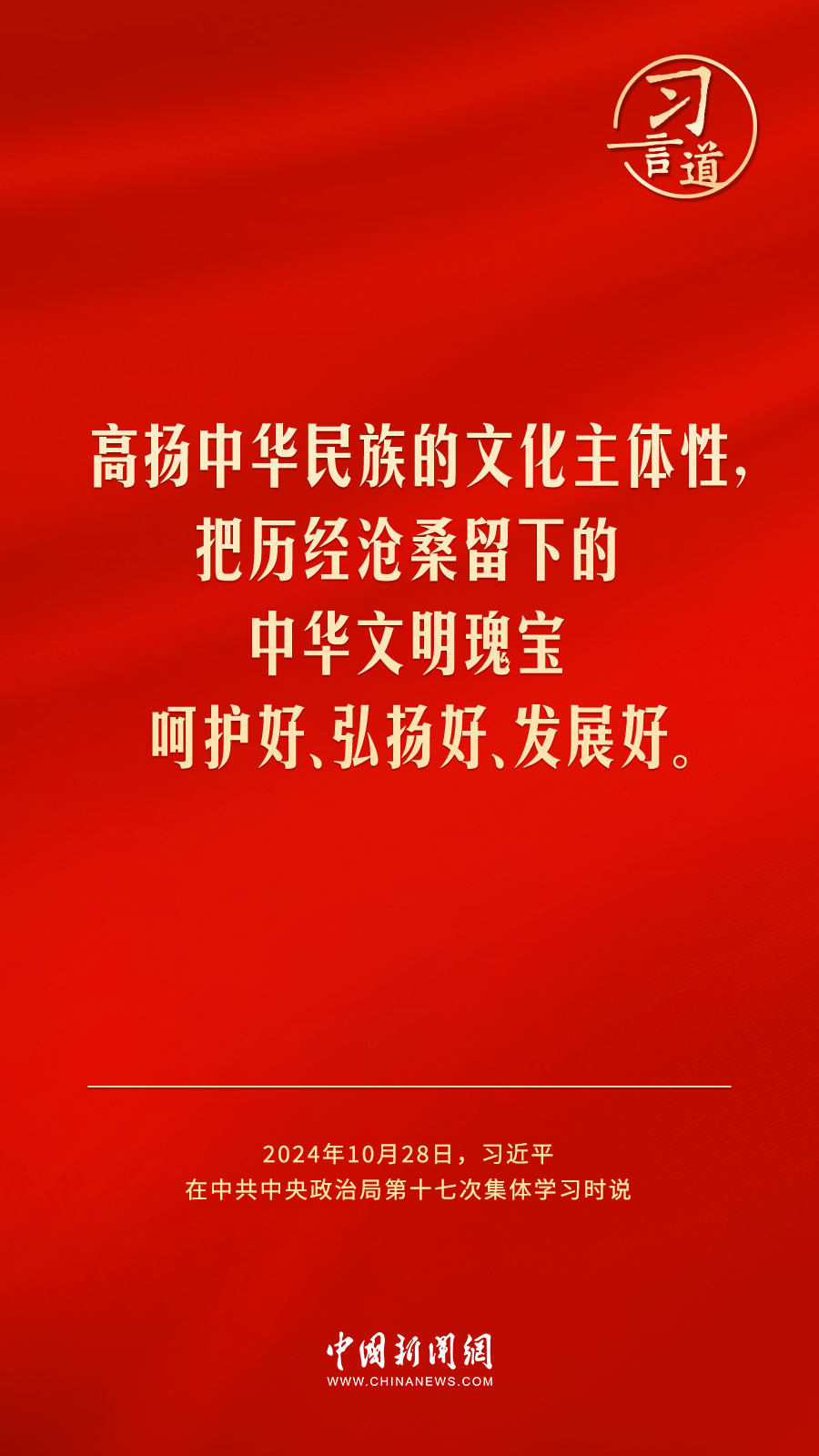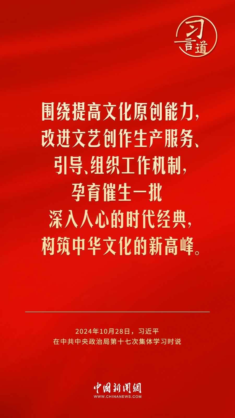 中共中央政治局10月28日下午就建設(shè)文化強(qiáng)國(guó)進(jìn)行第十七次集體學(xué)習(xí)。中共中央總書(shū)記習(xí)近平在主持學(xué)習(xí)時(shí)強(qiáng)調(diào)——