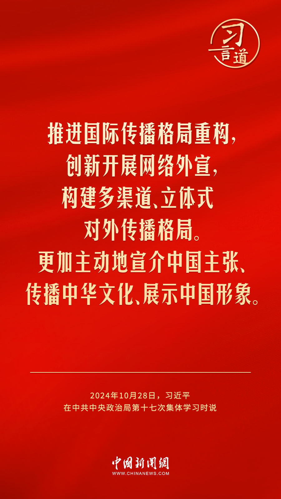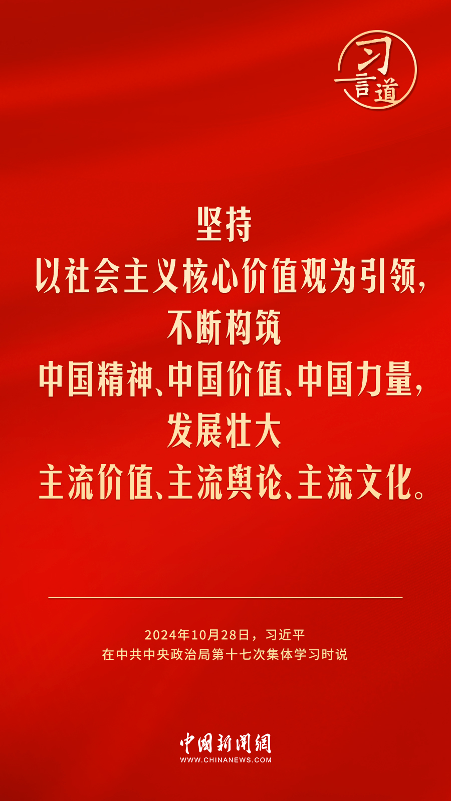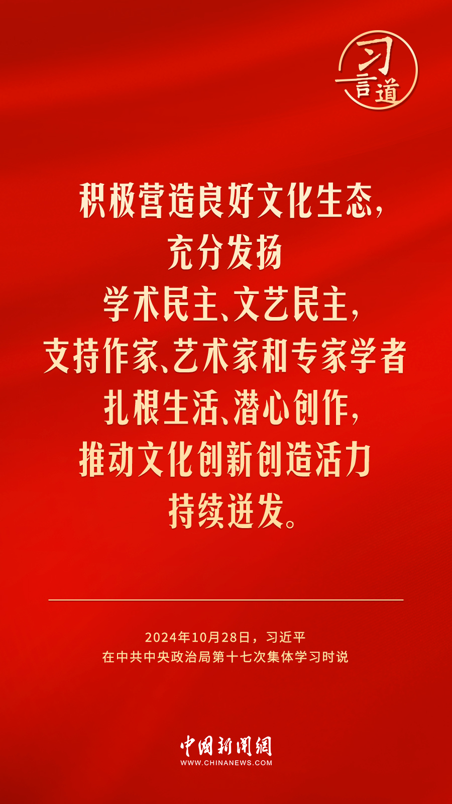 中共中央政治局10月28日下午就建設(shè)文化強(qiáng)國(guó)進(jìn)行第十七次集體學(xué)習(xí)。中共中央總書(shū)記習(xí)近平在主持學(xué)習(xí)時(shí)強(qiáng)調(diào)——
